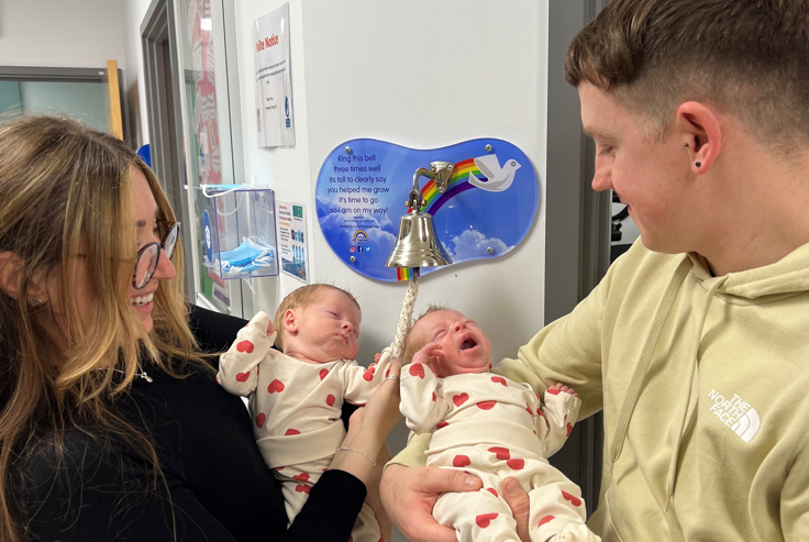 Yn dilyn genedigaeth eu gefeilliaid, Frankie a Jax, parhaodd y cymhlethdodau. Yn bedwar diwrnod oed yn unig, cafodd yr efeilliaid eu gwahanu, wrth i Jax gael ei drosglwyddo i Ysbyty Athrofaol Cymru i gael triniaeth arbenigol.